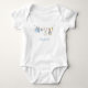 Este coelho na corda de roupa vestido de azul com certeza vai ficar fofo no seu pequeno! Edite o texto facilmente.