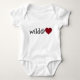 Este bébé apresenta a frase "Selvagem no coração" representada pela palavra "selvagem" seguida pelo sinal de "at" e um coração de cremson.