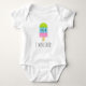 Um sorvete de picolé bonito desenhando Baby Bodysuit. Um macacão engraçado com tema de verão. Criador de bebês personalizado / rastreador para crianças. Personalize um traje de uma peça com ilustração de desenho animado. Faça sua roupa única para um bebê ou garota nova. As roupas do garoto da Trendy personalizadas com nome ou citação engraçada. Vestuário de bebê único para recém-nascidos ou em breve mamães. Faça suas próprias roupas personalizadas para filho, filha, neto, neta, neto, sobrinho, sobrinha etc. design para crianças pequenas. Disponível em azul pastel, rosa, cinzas e branco.