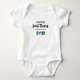 Um anúncio de bebê fofo e moderno em bodysuit com um coração azul. Perfeito para presentear novos pais em 2026..