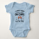 design de tipografia com a citação "Sou a prova de que o papai nem sempre trabalha com carros" adequado para o seu bebê se você é um pai mecânico ou adora trabalhar com carros.