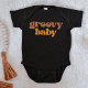 Este macacão de bebê de uma peça apresenta uma fonte temática retro dos anos 70 em mostarda e branco e as palavras 'groovy baby'. Este macacão de bebê combina perfeitamente com a Camiseta STEVIE Groovy Mama: https://www.zazzle.com/stevie_retro_70s_peace_daisy_groovy_mama_t_shirt-235620744441344170