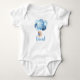 Um belo traje de bebê com ilustração fofa de um Urso de Teddy com Balões Azuis e Prateados.