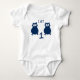 Duas corujas azuis em um macacão branco de bebê para o primeiro aniversário do bebê. Eu sou um.