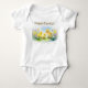 Texto decorativo do felz pascoa com pintinhos e flores silvestres
