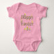Texto decorativo do felz pascoa com pintinhos e flores silvestres