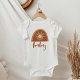 Este saltador de uma peça de bebê apresenta um terracota boêmico e ferrugem o arco-íris com um sol no meio. Este jumper é perfeito para anunciar um novo bebê na família ou como presente de chá de fraldas. 💜 CORES SÃO EDITÁVEIS! Clique em 'editar design' para alterar as cores.