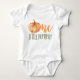 Celebre o seu primeiro aniversario com este adorável "Um Pequeno Pumpkin". A design apresenta uma abóbora de cor d'água laranja com a frase "Uma Pequena Abóbora" em letras laranja e verde. Personalize o traje com texto personalizado ou deixe-o vazio para um design perfeito para as primeiras festas de aniversário do outono e do Dia das Bruxas.