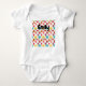 Este macacão-bebê tem um médio de flores moderno século design feito de praças, ovais e diamantes que foram manipulados para formar flores.