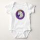 Cavalo de raça branca com uma coroa ouro e um corno Unicórnio, rodeado por flores de massa púrpura.