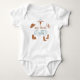 Este jumper de uma peça de bebê apresenta gráficos temáticos terracotta rodeados modernos e uma combinação de fontes temáticas com o cowboy azul e laranja queimado. Esta roupa de bebê é a roupa perfeita para a sua festa de aniversário de rodeio.