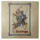 Uma representação de uma batalha entre uma ponte russa e um guerreiro asiático, ambos em cavalo. O texto cirílico (russo) que lê "Б о а т ы гьрs" (Bogatyr) também é exibido. Bogatyri são personagens heroicos encontrados em épicos eslavos medievais. São parecidos com os cavaleiros da literatura ocidental. A maioria das histórias sobre bogatyri gira em torno do tribunal de Vladimir I de Kiev (958-1015). Presume-se que alguns bogatyri sejam números históricos. Bogatyri protegeu a terra e as pessoas russas contra invasores, especialmente os Tatares. A alguns foram atribuídos poderes e força que eram quase divinos. Esta imagem é adaptada a partir de uma linha preta e branca ilustrando em "П о с т ь е о в с л а в н ы х б о г а т ы р я х з л а т о м г р а д е К и е в е и в е л и к о й н а п а с т и н а з е м л ю Р у с с к у ю Cidade de Ouro Kiev e o Excelente Scourging da Terra Russa), por Tamara Probhiotal; publicado na URSS em 1974.