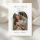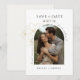 Esse casamento moderno e minimalista salva a data das cartas achatadas que contêm uma foto de casal de boho, delicada imitação de elementos florais de ouro e um conjunto contemporâneo de fontes em preto-jato. O detalhe da flor é repetido no verso contra um fundo de marfim mole. Este design é contemporâneo e chique. Perfeito para o na moda e casal elegante.