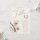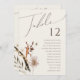 Apresentando nossa maravilhosa flor silvestre do outono | gráfico de números de tabela bege, que inclui um design simples e moderno que reflete a beleza da natureza. Apresentando flores e folhas de terracota de queda seca prensada, ele captura a essência das matizes laranja queimadas em outubro, criando um design mínimo, mas clássico, que expele calor e charme. O design tem um toque caprichoso de elegância que inspira uma delicada sensação de safra, onde folhas verdes de sábio, sotaques de cobre ferrugem e tons de terra floral criam um estilo único e inesquecível. Aproveite a beleza do seu dia especial com um produto que capta um design mínimo, mas único, e definirá a cena para uma experiência de casamento verdadeiramente memorável. Contacte-nos com quaisquer perguntas sobre o design, e deixe-nos ajudá-lo a fazer o casamento dos seus sonhos.
