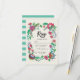 Um cartão de resposta boêmio com um fundo listrado azul-turquesa