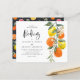 Convide familiares e amigos para o seu casamento com este convite de casamento botânico. Ele apresenta ilustrações aquarelas de laranjas, limões, laranjas floridas e verde com um padrão de citros correspondente. Personalize adicionando o nome, data, hora, local, endereço e outros detalhes do evento. Este convite para o casamento dos citros é perfeito para casamentos de jardim e de verão. Itens correspondentes estão disponíveis.