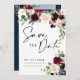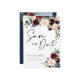Boho Burgundy e Blush floral Salve a data Convite. Esse convite se caracteriza por boho burgundy e rosas e flores esmagados com duas fontes modernas de alta classe que moldam as tendências dos eventos festivos atuais e futuros.