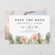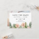 Boho Cactus Suculenta Casamento Salve o casamento Datilografado Salve o cartão de datilografia com alguns cactos e suculentos e flores rosadas empoeiradas. A parte traseira da placa apresenta a foto do casal.