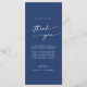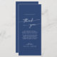 Este obrigado azul real e boho que você coloca é perfeito para um casamento minimalista. O ousado design boêmico azul escuro e moderno apresenta uma caligrafia rústica simples com um estilo único, mas clássico. Personalize seu cartão de mesa de recepção com seus nomes e uma nota atenciosa para seus convidados, família e amigos.