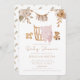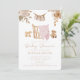 Convide seus entes queridos em estilo com este convite de chá de fraldas boho com uma cena acolhedora de berço, cobertor de bebê rosa macio, ursinho de pelúcia e delicados florais de tons neutros. A design combina encanto rústico com elegância boêmica, perfeita para celebrar os pais a serem de uma forma quente e acolhedora. As ilustrações em aquarelas de um bassinet, brinquedos de madeira e sotaques florais criam uma vibração pacífica e amorosa. Totalmente personalizável, este convite é ideal para chás de fraldas com uma atmosfera suave, natural e sentida.