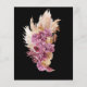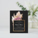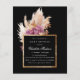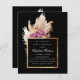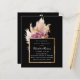 Este Budget Black Boho Baby Shower Invtions - apresenta texto branco escrito à mão e elegante com burgundy chic e flores secas e ervas do deserto, quadro de ouro sobre fundo preto. O reverso deste convite é preto lacônico com boquete de flores e figos burgundy.