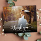 Orçamento Boho Moderno Tipografia Cardíaca (dois) 2 Casamento Fotográfico Obrigado Papel. O obrigado de casamento moderno do Na moda, que você modelo com uma foto vertical do cheio na frente, com o texto de sobreposição "Obrigado" em um roteiro de letras maiúsculas com letra maiúscula com letra cardíaca amorosa em branco na foto. ***POR FAVOR, NOTE! *** O PAPEL ORÇAMENTAL/FLYER É PAPEL FINO. *** ATUALIZE O PAPEL PARA UM PAPEL MAIS ESPESTO. *** Adicione seu nome e obrigado à sua mensagem. Se preferir escrever manualmente a sua nota, basta eliminar o texto de amostra para obter mais espaço. Se precisar de ajuda, entre em contato com o designer!