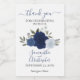 Essas lindas etiquetas de vinho em miniatura são perfeitas como favores de casamento, ou para agradecer aos membros da sua festa noiva. O rústico design de som bótico apresenta um aglomerado de rosas de aquarela pintados manualmente e folhagem em tons de azul, marinho e indigo empoeirados. O texto usa uma letra manuscrita de script e lê: Obrigado por Celebrar conosco. Há espaço para os seus nomes e a data do casamento, bem como o tipo de vinho ou conteúdo da garrafa.