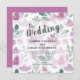 Elegante e moderno boho inspirou convite para o casamento floral. Apresentando flores de aquarela roxas e folhagem verde, repetindo sobre a superfície. Também inclui tipografia elegante com estilo escrito à mão.Muito fácil de personalizar para se adequar às suas informações pessoais.