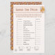 Este retrógrado adivinha o jogo do chá de fraldas de preços. Esta design é perfeita para um tema neutro em termos de gênero com estética boho que apresenta o padrão floral moderno do século médio e a tipografia de groovy. Este tema do chá de "olá, bebê" é divertido e tendencioso com uma grande elegância. Retro cores, vísceras e um giro moderno! Parte da coleção de Chás de fraldas Florais Retro Boho Neutro por Sexo. Faça com que estes convites únicos para chuveiros de bebês, decoração de festas e louças sejam seus próprios, clicando em "personalizar".