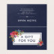 Cartão-presente azul marinho para o seu salão de cabelo, salão de unhas, ou para um artista de maquiagem, artista de lash ou similar. O presente está em azul marinho com buquês de flores boêmicas em laranja, vermelho de coral e rosa quente. Adicione suas informações de contato na parte traseira do certificado de presente. Dentro pode escrever um texto de isenção de responsabilidade ou restrições do cartão-presente.