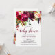 Este convite de chá de fraldas apresenta flores a aquarela bonito em tons vibrantes de marsala, vinho, verde profundo, vermelho e roxo, e correspondendo à tipografia moderna.