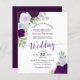 Estes convites para casamento baratos e amigáveis são a escolha perfeita para a aula, estilo e beleza num orçamento. O elegante design apresenta rosas pintadas manualmente de aquarela em tons de roxo, ameixa e violeta empoeirados, com um bando de folhas de eucalipto e verde. A tipografia apresenta a caligrafia da escrita do rico, e a parte de trás é uma cor roxa marmoreada profunda. Uma maneira maravilhosa de convidar seus amigos e família para compartilhar sua alegria em seu dia especial sem quebrar o banco.