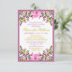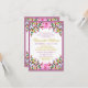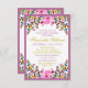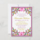 Convite para Chá de fraldas de Boho Foliage Hibiscus. Ramo branco с oloroso com flores roxas, azuis, cor-de-rosa, ouros, folhas verdes e hibiscos cor-de-rosa. Texto ouro e roxo. Fronteira roxa.
