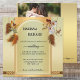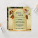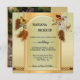 Um convite de casamento ao estilo boêmio com um tema de caçador de sonhos em verde-quente de ouro com penas. Na parte de trás está sua foto personalizada.