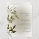 Este design apresenta um buquê simples e flexível, de verde botânico, sobre um fundo branco e oval de borrão verde macio. É delicado e elegante. Criada pela "Simply Farmhouse Press", faz parte da suíte de cartas Boho Greenery Modern Floral Wedding.
