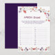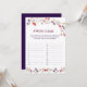 Bring laughter and charm to your bridal shower with this Boho New Chapter Begins Apron Game. Designed with watercolor wildflowers, lavender hues, and elegant storybook flair, this fun memory game challenges guests to recall what the bride was wearing. A perfect match to the Purple Poppy & Lavender Storybook Collection.