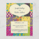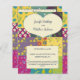 Um gráfico de forma cardíaca é colocado sobre um fundo de colcha floral neste programa de casamento que tem um aspecto quente e colorido. O programa de dois lados tem um programa de cheios e uma lista de participantes no verso com os nomes da noiva e do noivo, a data e o local do casamento e uma citação opcional na frente.