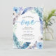 Penas e flores de aquarelas azuis e roxas aparecem neste belo convite de aniversário. Itens correspondentes também disponíveis nesta coleção. © Mini Moi Impressões