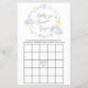 Jogo branco bingo chá, bonito, de bebês, apresentando aquarelas azuis e amarelas de um arco-íris, sol, corações, estrelas, luas e nuvens e "Bingo Chá de fraldas" num roteiro na moda.