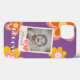 Boho Retro Flores Amarelo Cor-de-rosa capas de iphone de Foto. Um boho-retrô giro, fofo e divertido com flores coloridas e uma foto polaroide vintage com corações como peça central. Personalize a capas de iphone com a foto e o nome do seu bebê e adicione um pouco de talento de anos setenta à sua vida diária. Este é também um presente maravilhoso para uma nova mãe, avó, tia ou madrinha.