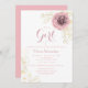 Simples, elegante, moderno convite de chá de fraldas rosa esbranquiçado com elegante rosa de cor d'água, fino local floral de ouro e caligrafia moderna.
