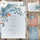 Este casamento salve a design do cartão de data apresenta belos florais de cor de ferrugem laranja azul e queimada em um retângulo branco suave colocado sobre um fundo azul empoeirado. Mole e delicada; perfeita para qualquer estação. Criado pela imprensa simplesmente de farmácia.