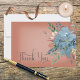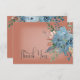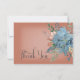 Este design de cartões de agradecimentos de casamento apresenta lindos florais cor de ferrugem laranja azul e queimada em um retângulo branco suave colocado em um fundo de ferrugem laranja queimado. Mole e delicada; perfeita para qualquer estação. Criado pela imprensa simplesmente de farmácia.