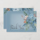 Este design de cartões de agradecimentos de casamento apresenta belas flores de canto de cor de ferrugem laranja azul e queimada em um retângulo branco suave colocado sobre um fundo azul empoeirado. Mole e delicada; perfeita para qualquer estação. Criado pela imprensa simplesmente de farmácia.