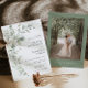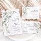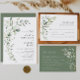 Boho Sage Greenery Botânico Olive Elegante Simples Convite Para Casamento. Um convite botânico minimalista feito no estilo boêmiano com elegante e simples botânicos verdes de vassoura em cor d'água impressa à mão. O fundo de aquarela verde é maravilhoso para casamentos de boho e casamentos verdes. Convites editáveis para primavera, verão, outono (outono) e casamentos no inverno.