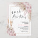 Boho Silk Rosas Pampas Grass Birthday Convite Bohemian inspirou um convite de aniversário com dois arranjos florais naturais coloridos e pálidos ou pincelados com grama pampas e uma imagem caligráfica moderna preta como título. Ideal para quem procura um aniversário inspirado na boêmia.