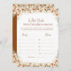 Traga risos à sua celebração com este cartão de jogo "What Grade were the Bride and Groom", chá de panela de boho terracotta. Apresentando rosas brilhantes e ousados de aquarela com lírios elegantes, este design floral rústico adiciona um toque de na moda. Os convidados adorarão adivinhar as idades ou as notas escolares do casal em suas fotos, fazer este jogo divertido e memorável. Perfeito para um tema de chá de panela rústico, boêmico ou terracota, essa impressão combina interações lúdicas com a elegante arte floral.
