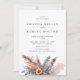 Celebre seu dia especial com este convite de casamento "boho watercolor" com flores, penas e erva-pampas. Perfeito para casamentos rústicos, de outono ou ao ar livre. Este modelo Canva é totalmente editável e pronto para impressão!
