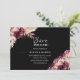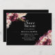 Casamento com Borgonha Floral Black Boho Salve a data - apresenta um roteiro elegante branco com rosas rosas rosas, cor-de-rosa e rosa de bege creme e galhos e folhas secos. O reverso desta chic escura Salve a data é preto.