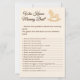 "Ponha seus convidados à prova com esta diversão e engajando Boho Western 'Who Knows Best' Game Card! Esta é uma atividade maravilhosa que encoraja uma conversa divertida e celebra a "Mãe a Ser", enquadrada por nossa doce ilustração de cavalo balançante e grama de pampas. Os convidados respondem a perguntas sobre a vida, as preferências e a personalidade da futura mãe. O cartão é projetado em nossa paleta de bronzeados e cremes suaves, que é neutra em termos de gênero, fazer-o um ajustado perfeito para uma celebração russa ou selvagem do oeste. Como jogar: o host distribui as cartas e uma caneta para cada convidado. Os convidados respondem às perguntas sobre a "Mãe a Ser". O anfitrião lê as respostas corretas (fornecidas antecipadamente pela Mamãe a Ser), e o convidado com as respostas mais corretas ganha um prêmio! Esta é uma adição sincera e hilária ao seu chá de fraldas de vaqueiro ou de vaqueira!"